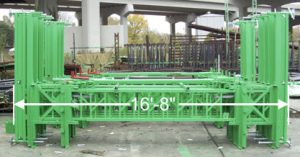 One pair of Non-Stop Rack Brackets locks your fully assembled towers into 4-foot-wide bundles that are as easy to handle as a pallet of block. Our Heavy-Duty scaffolding yields 10 legs per 4-foot-wide bundle with winches, 12 without. The support beam uses two of your leveling jacks to support the towers in the middle before the brackets are installed. Read More