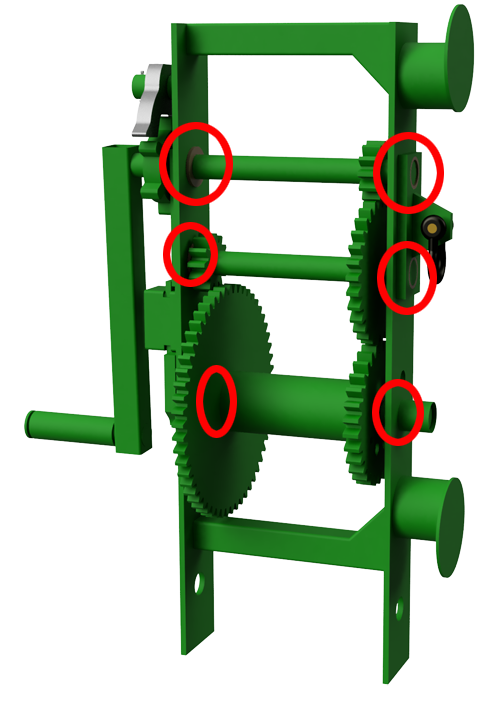 Self-lubricating bronze bushings provide years of smooth cranking. Wear parts, like the Double Acting Safety Dog and the 6-point wheel it engages are case hardened for maximum durability and long life.