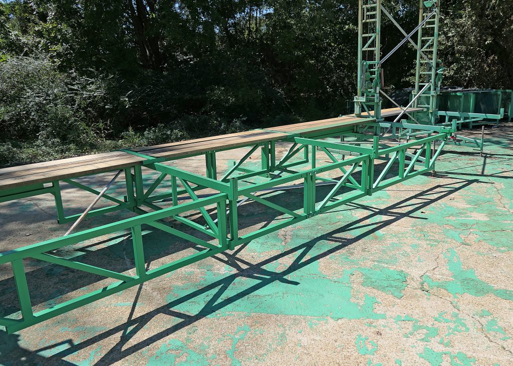 The plank configuration is exactly the same as regular Non-Stop Heavy-Duty scaffolding, especially the cut-boards that give the masons a flat workbench.