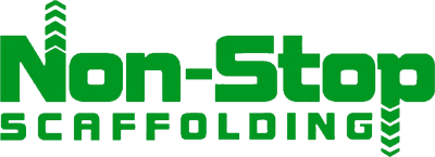 The plank configuration is exactly the same as regular Non-Stop Heavy-Duty scaffolding, especially the cut-boards that give the masons a flat workbench.