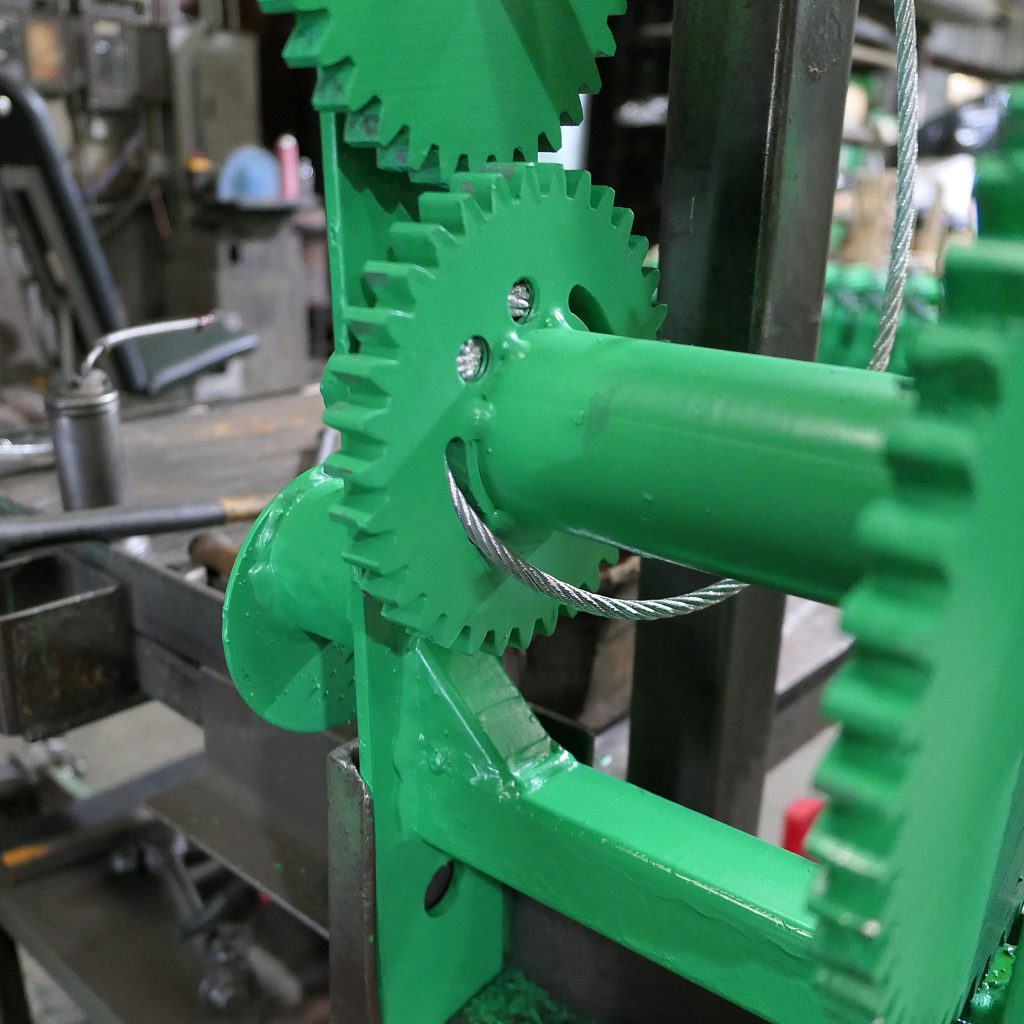 This anti-reverse safety feature means you must intentionally ride the dog with your free hand to reverse the winch. The scaffold can’t accidentally start lowering and dump the boards as has happened on other systems in the past.