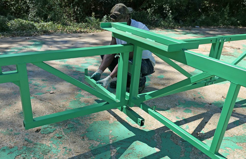 Bolt two labor-side truss units together to make a labor-side truss. Use only the 1/2 x 3-1/2 bolts and nylon locknuts provided by Non-Stop, or equivalent.