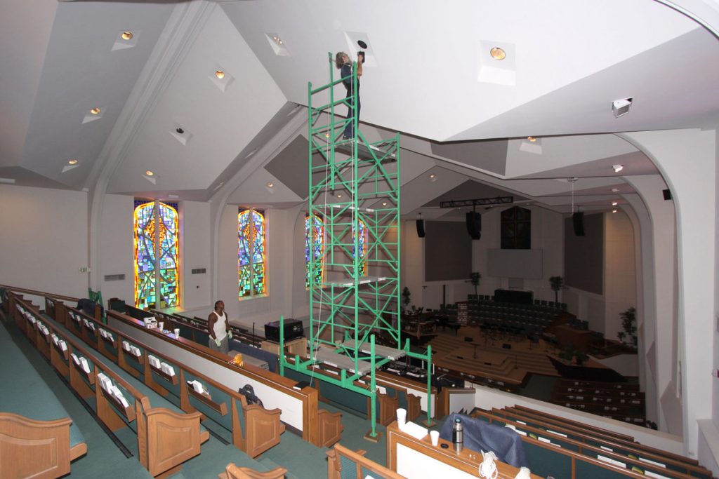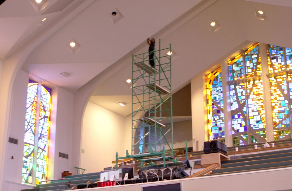 Light Bulb Scaffold™ is a division of Non-Stop Scaffolding. It is the best church scaffolding and auditorium scaffolding on the market today. There is no other light bulb changing system like it.